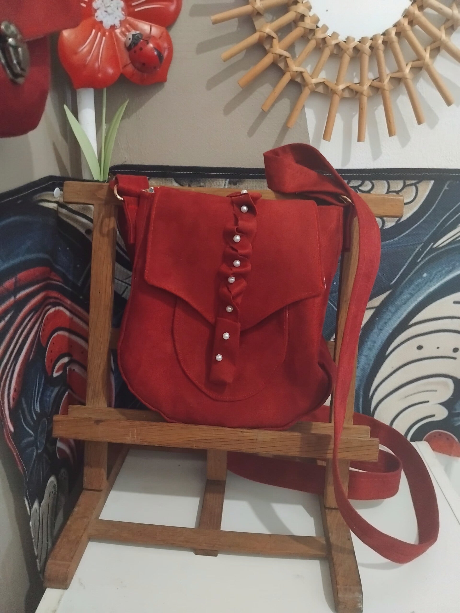 Sac perlé sur le rabat devant. Fabriqué en suédine lourde et un intérieur 100%coton.